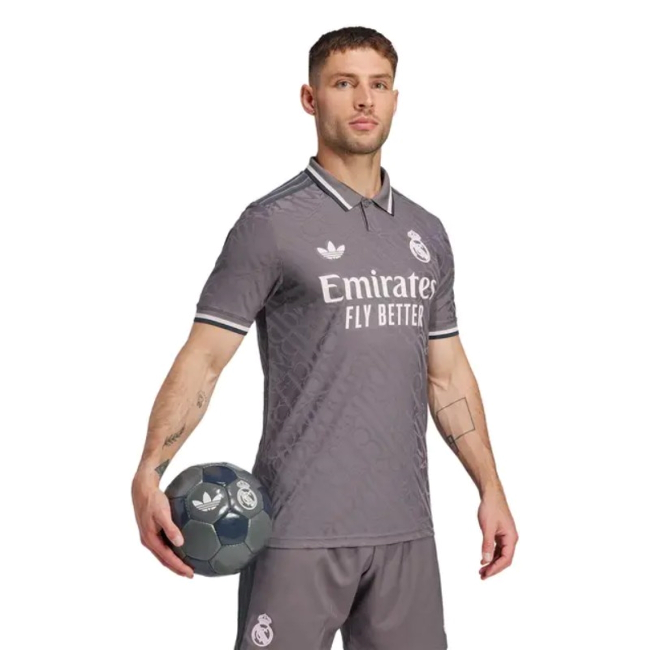 SoccerDealShop offers a vast sort of cheap Real Madrid jerseys, including Real Madrid replica football jerseys and player jerseys, kits and so on. Here is the newest Real Madrid Jersey Third Away 2024/25. For the 24/25 season, Real Madrid jersey is designed into a unique charcoal color that catches the eyes. Real Madrid jersey features a polo collar and some small pink details. Inspired by the fashion forward Louis Vuitton style and closet, the Real Madrid jersey uses a slick "RMCF" pattern that provides the blueprint for Real Madrid's new generation of Real Madrid replica football jerseys. What's more, in this Real Madrid replica football jerseys, you will enjoy lightweight fit and feeling that is more comfortable and ready for action, whether you're in the stands or at home. So get your hands on this Real Madrid replica football jerseys in your wardrobe now!